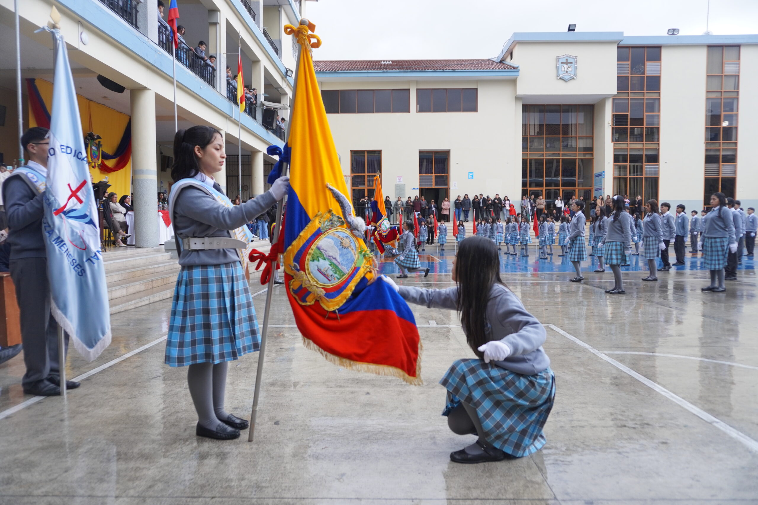 Con orgullo y amor patrio, la tarde de el 26 de septiembre nuestros estudiantes rindieron honor a los más altos símbolos nacionales en el Juramento a la Bandera del Ecuador. Felicitaciones a nuestra abanderada Liuba Mora